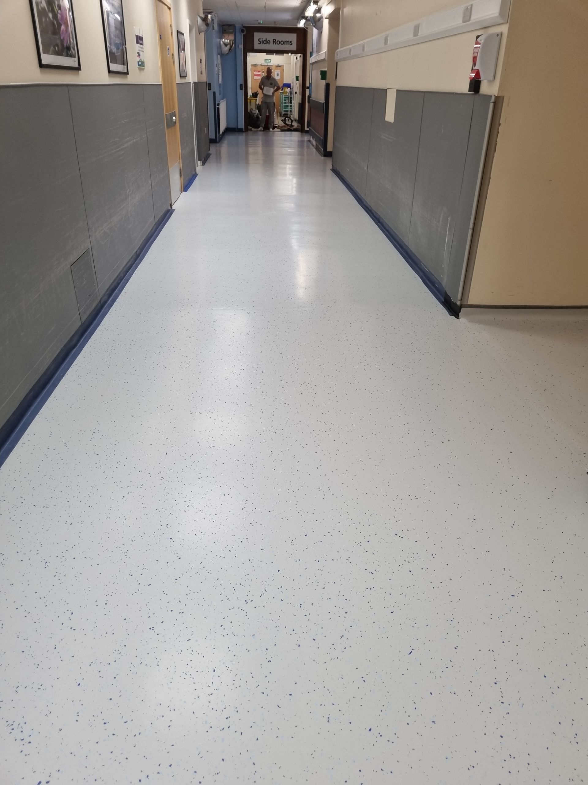 NHS - Old worn Corridor Vinyl - 9 hours later looks like new