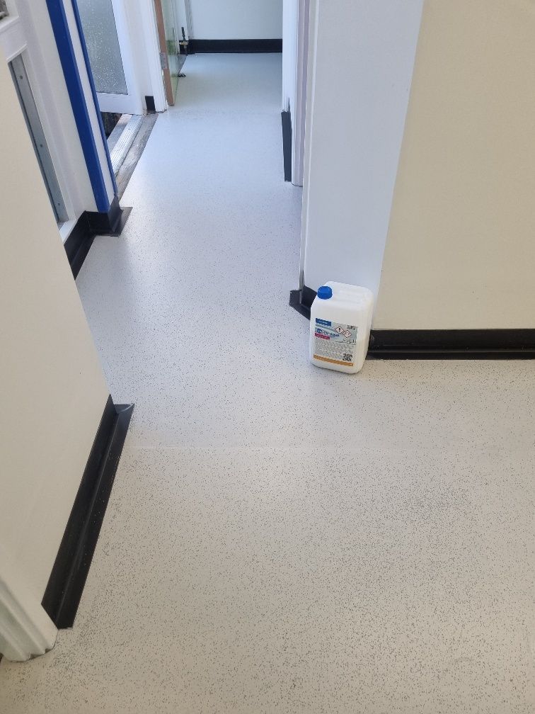 NHS - Old worn Corridor Vinyl - 9 hours later looks like new